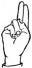 На ћирилици написано ФИЛОТИЈЕ ПРОМИЦАЧ састоји се из 16 слова [?]. Исписано ћириличном једноручном азбуком за глувонеме: